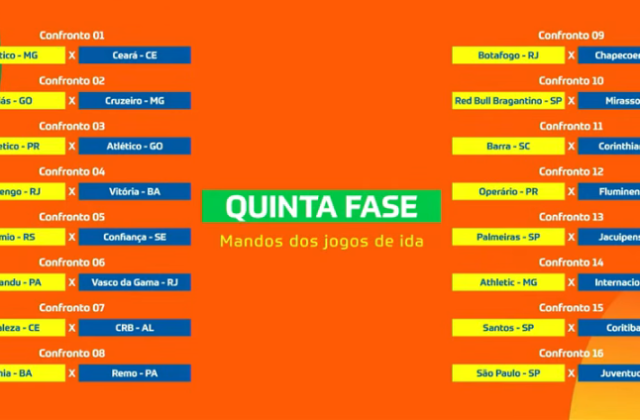 Sorteio definiu datas e premiação da quinta fase da competição
